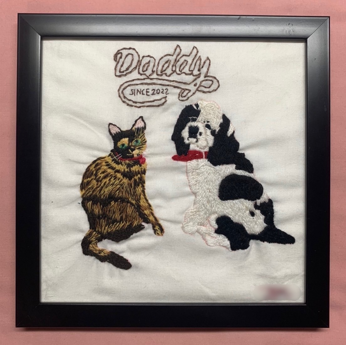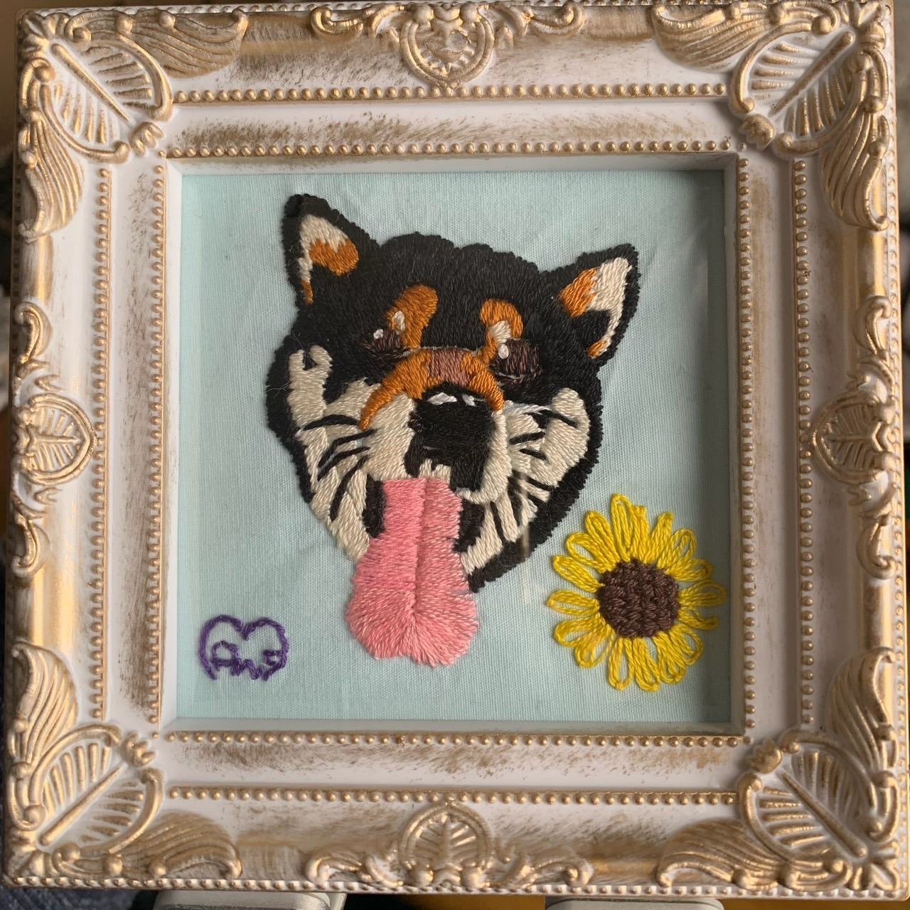 同年9月中旬にアメリカン・コッカー・スパニエルを家族に向かい入れたことをきっかけに動物刺繍を制作する機会が増えました。